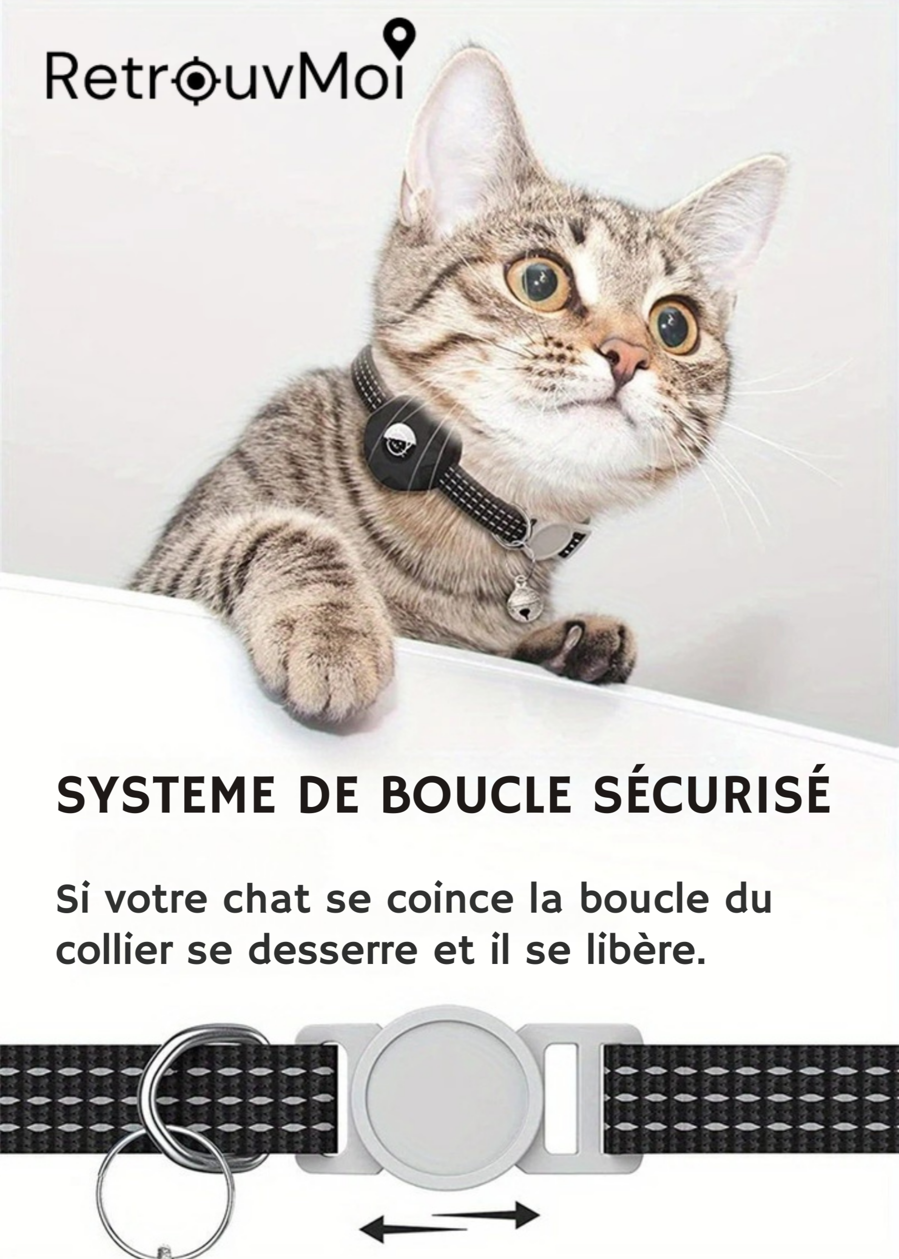 🛡️ Compartiment sécurisé intégré au collier, résiste aux chocs et à l’eau